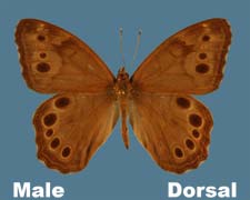 | Similar Species: The Smoky Eyed Brown has smooth wing margins compared with the Northern Pearly-Eye’s somewhat scalloped wing margins. Ventrally the Northern Pearly-Eye exhibits more maculation with the basal and distal areas showing more contrast than the Smoky Eyed Brown. The eyespots above and below on the Smoky Eyed Brown are more uniform in size than on the Northern Pearly-Eye. |